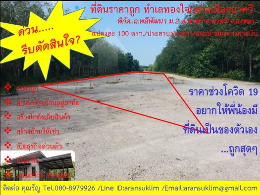 ขายที่ดินราคาถูก ทำเลทองใจกลางเมืองนาทวี