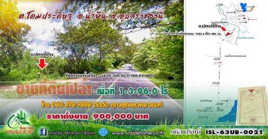 INSIDE HOME ขายที่ดินเปล่า 1 ไร่ 3 งาน ติดถนนน้ำยืน-นาจะหลวย