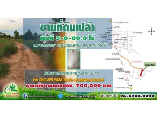 INSIDE HOME ขายที่ดินเปล่า เนื้อที่ 5 ไร่ แยกจากถนนชยางกูร