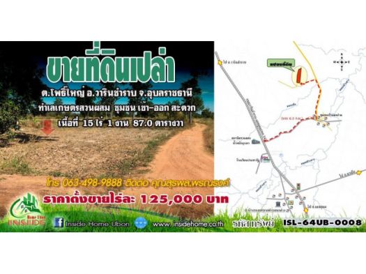 บ้าน/ที่ดินอยู่ในเขต: ต.โพธิ์ใหญ่ อ.วารินชำราบ จ.อุบลราชธานี