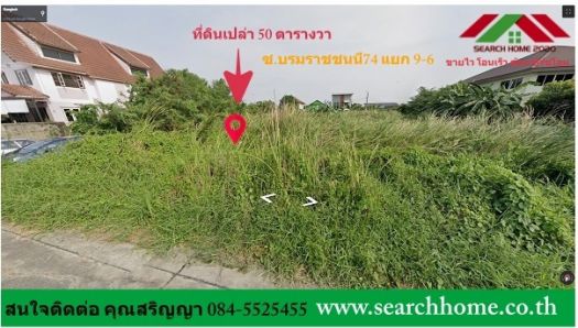 ขายที่ดิน 50 ตรว.(1) ซ.บรมราชชนนี74 แยก 9-6 ถ.บรมราชชนนี ศาลาธรรมสพน์ ที่สวย ถ.คอนกรีต ยังไม่ถม ไม่เปลี่ยว ติดต่อ 084-552-5455