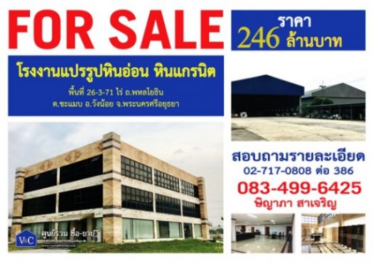 {SALE}โรงงานแปรรูปหินอ่อน-หินแกรนิต วังน้อย พื้นที่ 26-3-71 ไร่ ถ.พหลโยธิน จ.พระนครศรีอยุธยา