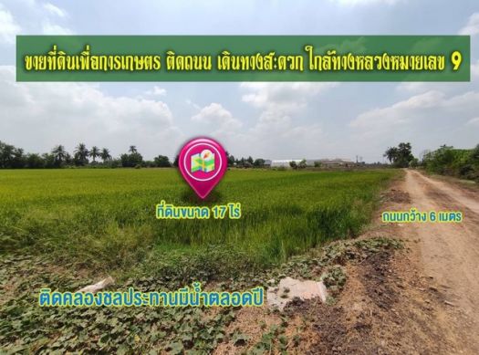 ขายที่ดินด่วน สามโคก 17 ไร่ ติดคลองชลประทาน(คลองสระ) พร้อมบ้าน 1 หลัง ใกล้ทางหลวงหมายเลข 9 เพียง 3 กม. ขายยกแปลง