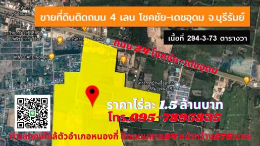 ขายที่ดินบุรีรัมย์หนองกี่ 294-3-73 ไร่ ติดทางหลวงสาย24 โชคชัย-เดชอุดม*ขายด่วน*