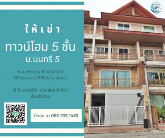 ให้เช่า ทาวน์โฮม ราคาพิเศษ ทำออฟฟิศได้ นนทรี 5 300 ตรม. 19 ตร.วา แบ่งโซน ครบฟังก์ชั่น