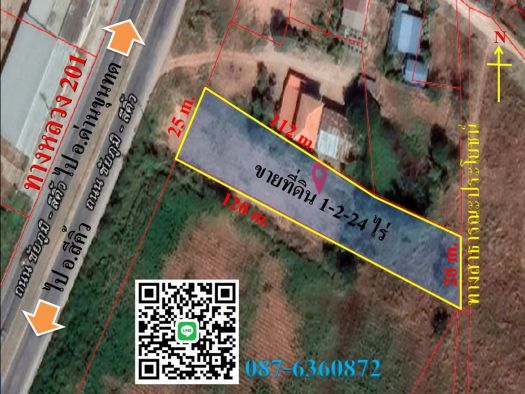 ขายที่ดินติดทางหลวง 201 เนื้อที่ 1 ไร่ 2 งาน 24.0 ตารางวา อ.สีคิ้ว จ.นครราชสีมา
