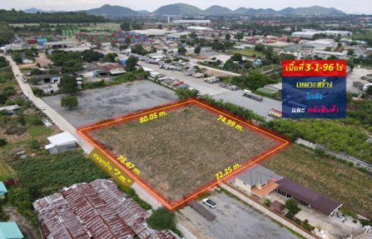 ขายถูกมาก! ที่ดินใกล้ท่าเรือแหลมฉบัง อ.ศรีราชา จ.ชลบุรี (เหมาะสร้างโกดังและคลังสินค้า) 3-1-96 ไร่ หน้ากว้างติดถนน 73