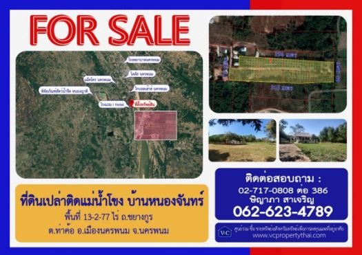 ที่ดินเปล่าถมแล้ว ทำเลดี ติดแม่น้ำโขง เพียง 200 เมตร