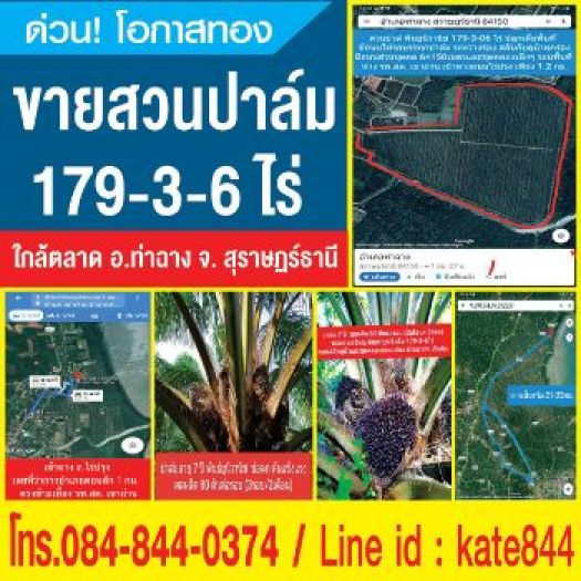 Sell Land, palm trees 178 rai at Tha chang. Near main road, central of Tha chang district.
