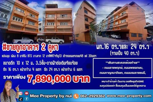 #ขายถูกอาคาร 2 คูหา แปลงมุม ใกล้BTS บางแวก เพียง 8 นาที พท.16 ตร.วและ 24 ตร.ว (รวมเป็น 40 ตร.ว) ขนาด 10 x 12 ม. 3.5ชั้น+ดาดฟ้าต่อเติมเรียบร้อย