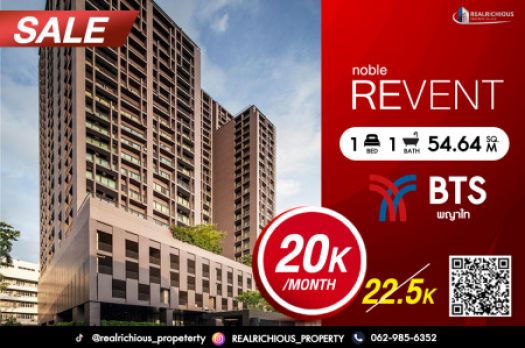 ให้เช่า คอนโด Noble Revent 54.64 ตรม. ติด BTS / Air port link พญาไท ชั้นสูงเว่อ ราคาเพียง 20,000 เท่านั้น ห้องไซด์ใหญ่สุด ตกแต่งครบ