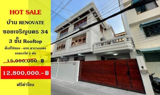 ขาย บ้านเดี่ยว Renovate 3 ชั้น + Rooftop ซอยเจริญนคร 34,40 ใกล้ BTS สถานีกรุงธนบุรี