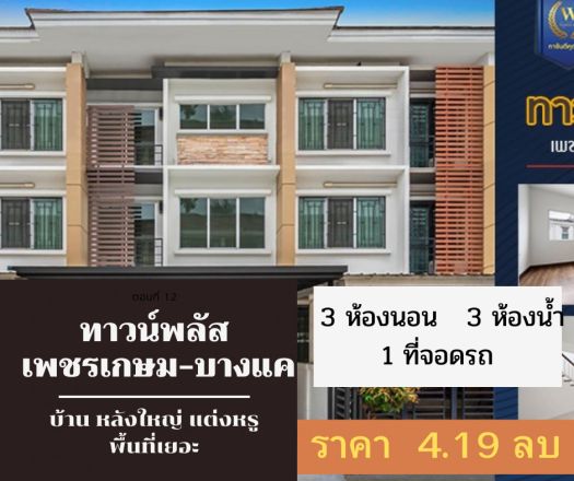 - ชื่อโครงการ: ทาวน์พลัส เพชรเกษม-บางแค / Town Plus Petchakasem - Bangkhae