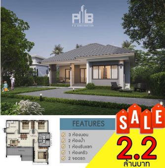 -บ้านเดี่ยวสมัยใหม่ 3นอน 2น้ำ 1ห้องโถง 1ห้องรับแขก 1ห้องครัว พร้อมโรงจอดแยกจากตัวบ้านจอดได้ 2คัน