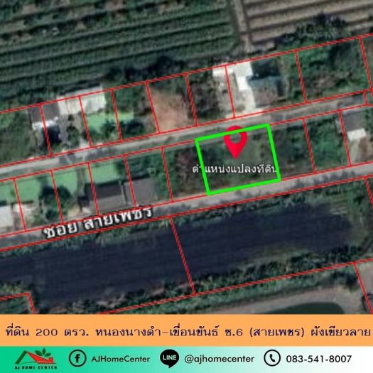 ขายที่ดิน200ตรว. ซ.หนองนางดำ-เขื่อนขันธ์ (สายเพชร) ต.ตลาดจินดา นครปฐม ติดถนน2ด้าน
