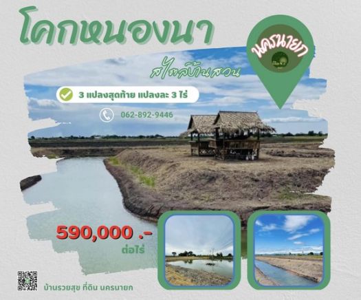 โคกหนองนาสไตล์บ้านสวน ขนาดที่ดินแปลงละ 3 ไร่ ราคา 1,770,000 บาท