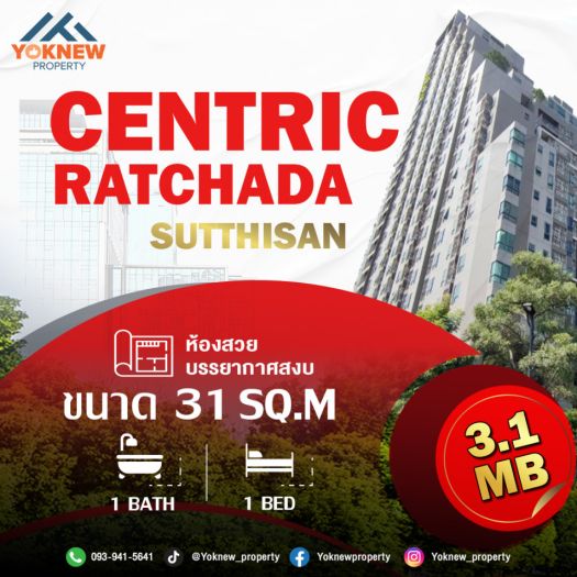 ขายคอนโด centric ratchada-suthisan ห้องนี้เจ้าของอยู่เองไม่เคยปล่อยเช่าเลย ห้องสะอาดสภาพดี ใกล้ MRTสุทธิสาร