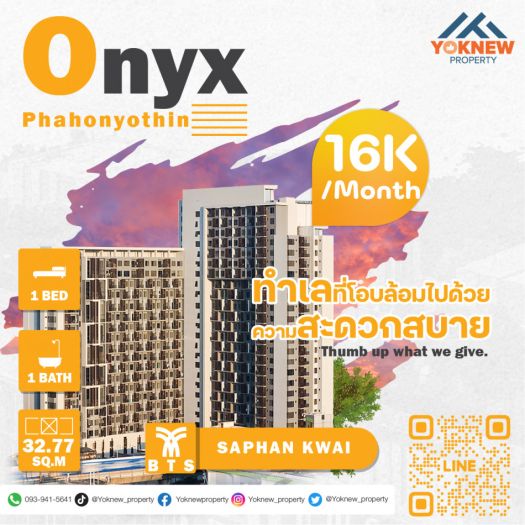 ห้องว่างแล้วคะ เช่าห้อง 1 Beds ราคาที่ถูกโดนใจ Onyx Phahonyothin ในย่านสุดฮิต ย่านสะพานควาย