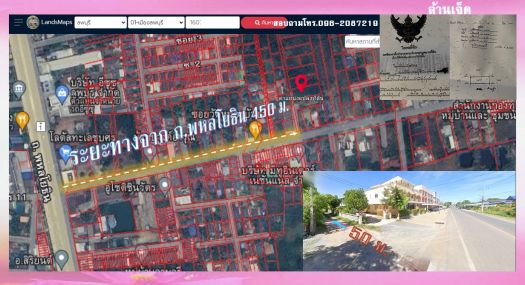 ที่ดินปลูกบ้านจากถ.พหลโยธินเข้าบ้านหนองบัวขาว 450 เมตร โฉนด 202 ตร.วา หน้ากว้าง 18 เมตร
