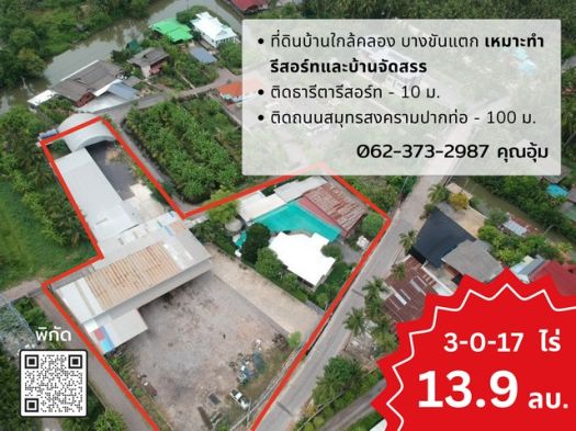 แปลงใหญ่พร้อมบ้าน บางขันแตก อยู่ใกล้คลอง ตรงข้ามธารีตารีสอร์ท
