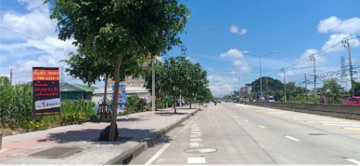 เป็นที่ดินเปล่ารูปสี่เหลี่ยมผืนผ้า ด้านหน้าติดถนนเลียบวารี 6 เลนส์