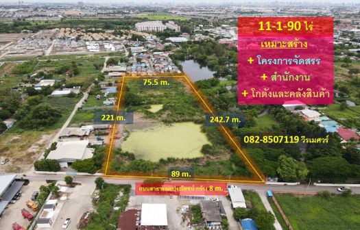 - ที่ดินหน้ากว้าง 89 m. เหมาะทำโครงการจัดสรร หรือ สร้างเป็นสำนักงาน