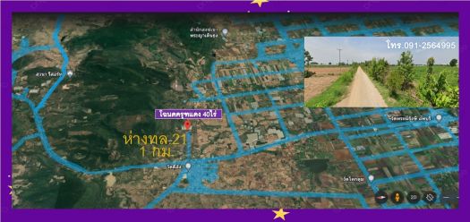 ที่ดินตำบลดีลัง ใกล้ทล.21 "ผังเมืองสีม่วง" โฉนด 40 ไร่ หน้ากว้าง 200 เมตร ไฟฟ้า3เฟส @ไร่ละ 2.4 สบ฿