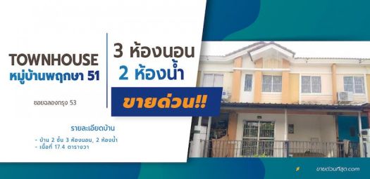 ขาย บ้านเดี่ยว ขายทาวน์เฮาส์ หมู่บ้านพฤกษา 51 ซ.ฉลองกรุง 53 เนื้อที่ 17.4 ตร.ว. 139.2 ตรม. 17.4 ตร.วา