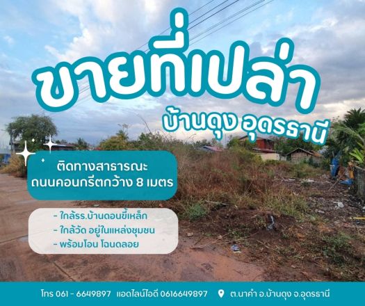 ขายที่ดินเปล่าบ้านดุง อุดรธานี ต.นาคำ อ.บ้านดุง จ.อุดรธานี อยู่ในชุมชนหมู่บ้านดอนขี้เหล็ก