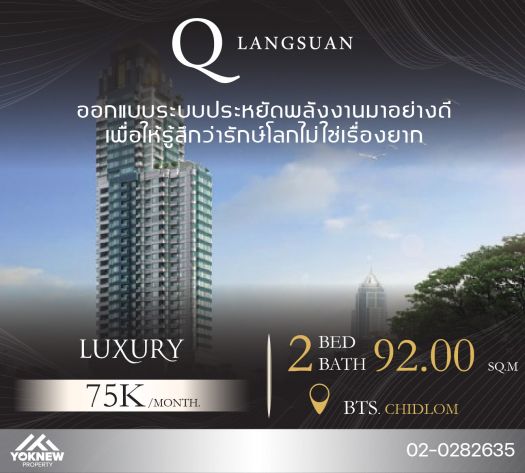 ให้เช่าคอนโด Q langsuan 2ห้องนอนตกแต่งสวยพร้อมปล่อยเช่า ติด BTS ชิดลม