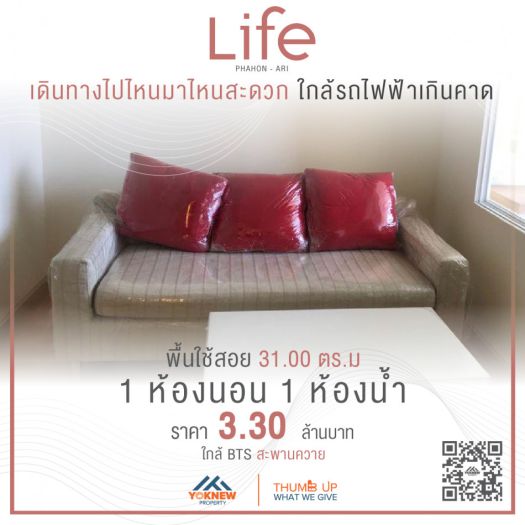 ขายห้องเฟอร์ครบ คอนโด Life @ Phahon – Ari ใกล้ BTS สะพานควาย เพียง 450 เมตร