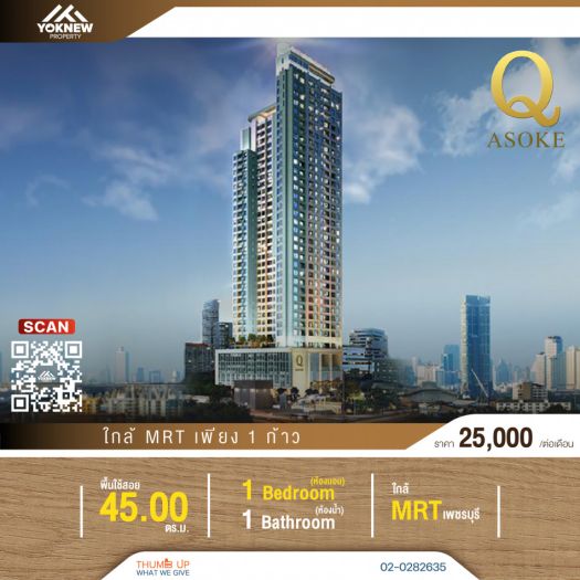 ว่างให้เช่า คอนโด Q Asoke ห้องสวยพร้อมอยู่ เดินทางสะดวกสบาย ติดกับ MRT เพชรบุรี