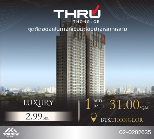 ขายThru Thonglor ใกล้ BTS ทองหล่อ ห้องราคาดีมาก ห้องตกแต่งครบ ใกล้ รถไฟฟ้า BTS ทองหล่อ