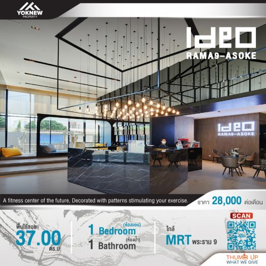 ว่างให้เช่า คอนโด Ideo Rama9–Asoke เดินทางง่ายมากห้องออกแบบมาสวยพร้อมย้ายเข้าอยู่ ชั้นสูง ใกล้ MRT สถานีพระราม 9