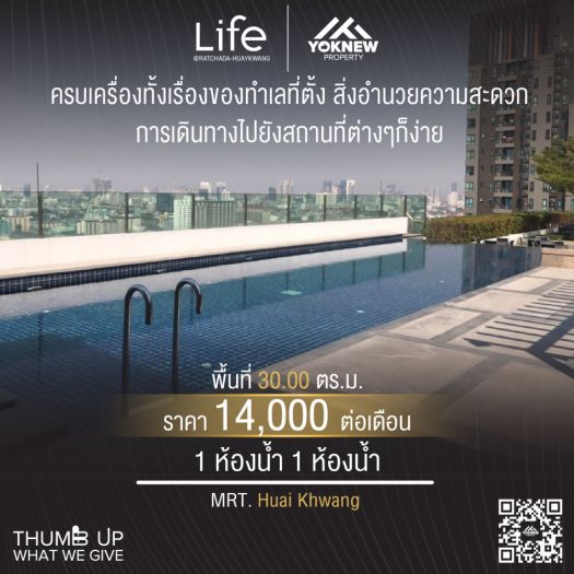 พร้อมเช่า1 ห้องนอน ตกแต่งมาพร้อมเข้าอยู่ Size 30 SQ.M คอนโด Life@Ratchada-Huai Khwang