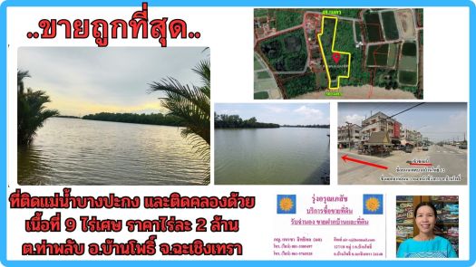 ขายที่ดินติดแม่น้ำบางปะกง 9 ไร่เศษ (ถมแล้วบางส่วน) ต.ท่าพลับ อ.บ้านโพธิ์ จ.ฉะเชิงเทรา