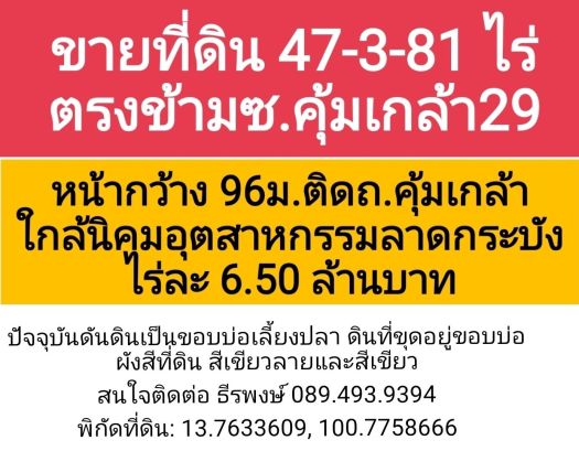 รายละเอียดบ้าน/ที่ดิน: ขนาด 47 ไร่ 3 งาน 81 ตาราวา