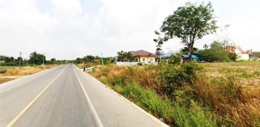 ที่ดินเป็นรูปสี่เหลี่ยมผืนผ้า ติดถนนลาดยาง หน้ากว้างประมาณ 35 เมตร ลึกประมาณ 478 เมตร