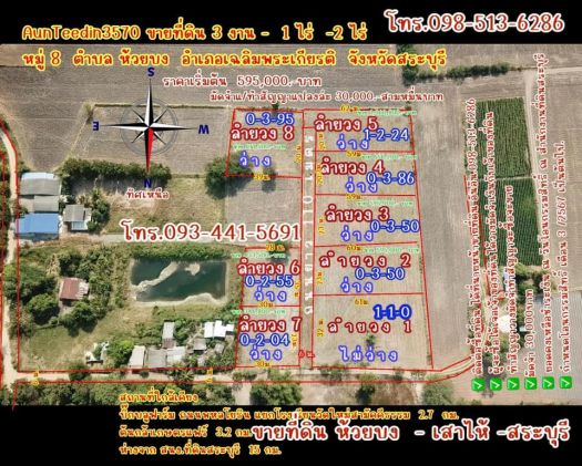 ขายที่ดินแปลงเล็กๆเสาไห้ ห้วยบง สระบุรี แบ่งขายที่ดิน 2งาน 346,970 บาท แบ่งขายที่ดิน 3งาน50ตรว. 595,000 บาท แบ่งขายที่ดิน1ไร่ ราคา1,700 บ/ตรว.หมู่8 ตำบล หัวปลวก อำเภอเฉลิมพระเกียรติ สระบุรี
