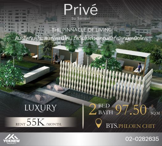 ว่างเช่าPrive by Sansiri ห้องใหญ่ 2 ห้องนอน เฟอร์นิเจอร์ครบ ใกล้ BTS เพลินจิต