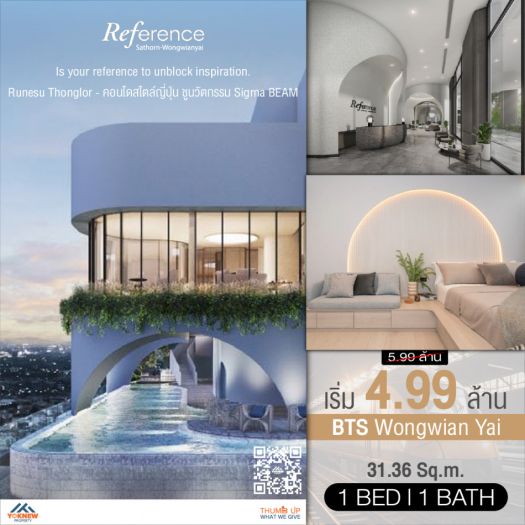ขายห้องตกแต่งสวย ราคาดี่ที่สุดในโครงการ คอนโด Reference Sathorn-Wongwianyai