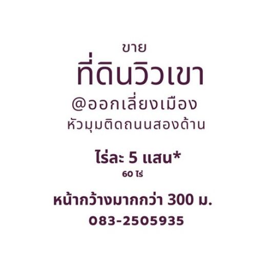 ที่ดินวิวเขา หัวมุม ติดถนนสองฝั่ง