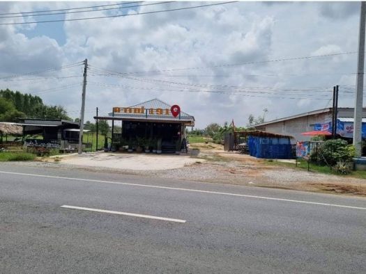 ที่ดินพร้อมสิ่งปลูกสร้าง ติดถนนสี่เลน ด้านหน้าเป็นร้านอาหาร มีครัวแยก+2ห้องพัก+2ห้องน้ำ(ที่ด้านหลังถมแล้ว)