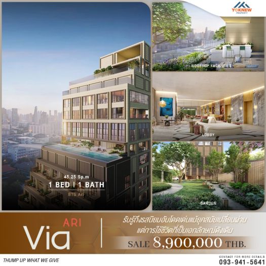 ขายด่วนเลี้ยวสัตว์ได้ คอนโด Via Ari ห้องขนาด 45.25 ตร.ม. ราคาดีมาก